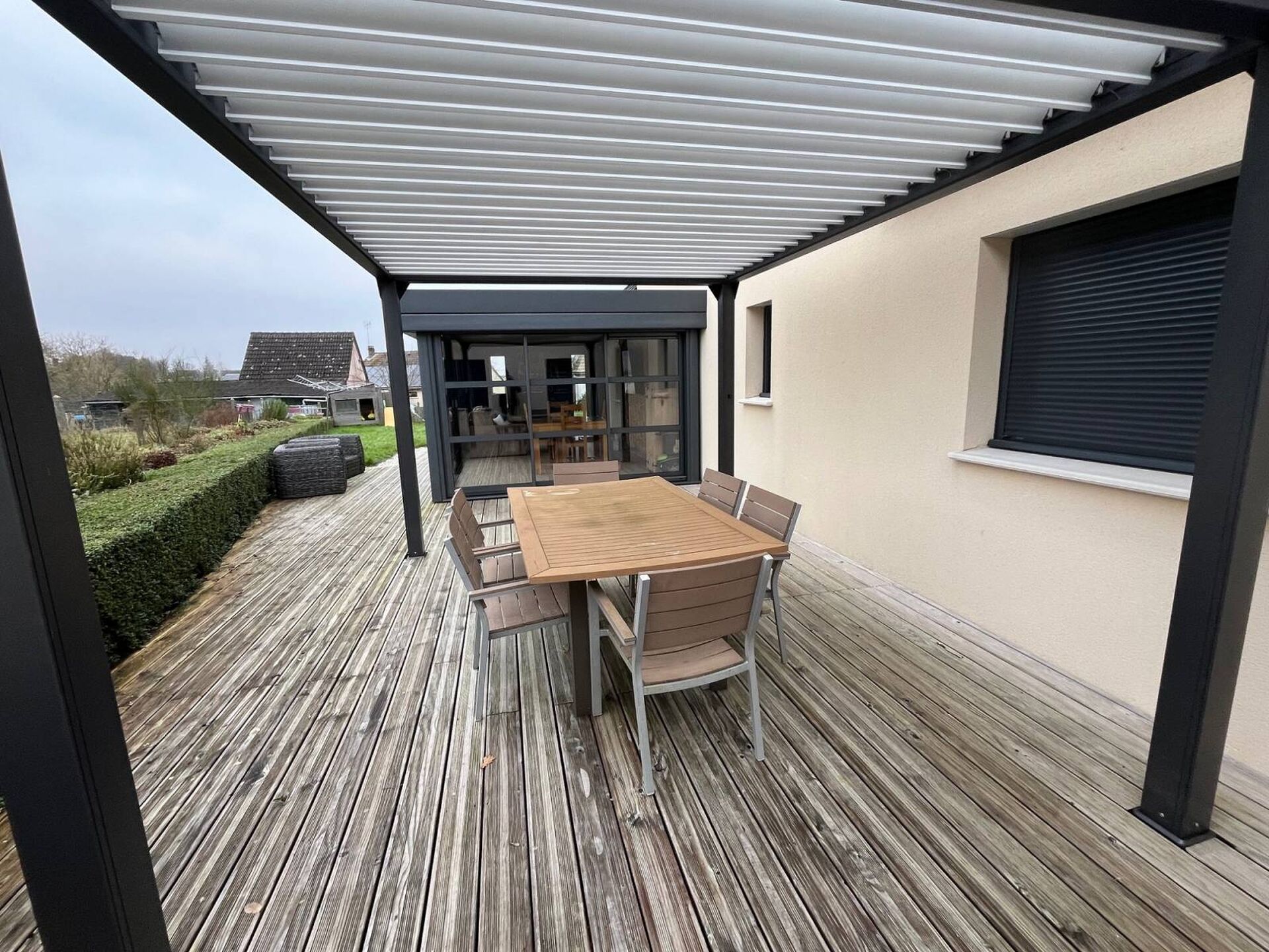 Terrasse et pergola pour profiter des 900m² de terrain et de la vue dégagée sur les champs.