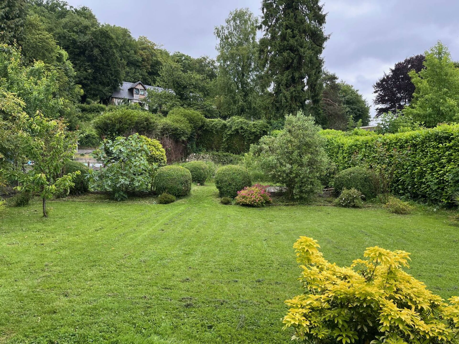 Vous disposerez d'un garage avec un atelier, d'un carport et d'une terrasse sur un terrain arboré de 1000m².